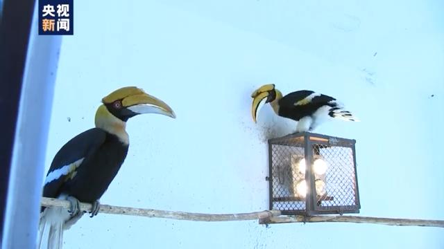 来自亚热带地区的犀鸟活泼好动,但最近它们也不喜欢在院子里玩耍。饲养员在屋内安装了腐竹,使室内温度保持在十度以上。